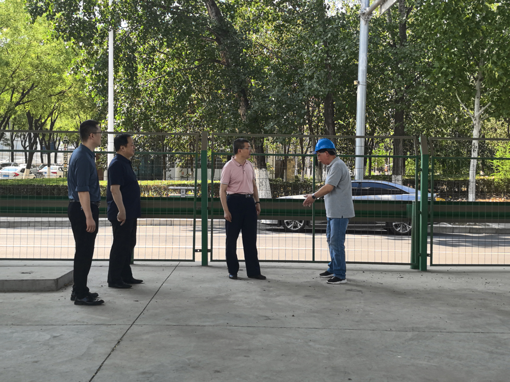 7月31日上午,按照《世园集团“防风险、除隐患、促发展”暨“送清凉”活动方案》部署安排,以世园集团党群工作部部长刘友团、世园旅汽公司总经理李晓东、世园集团党群工作部副部长李森为代表的世园集团第三工作组,到金桥三路充电站(二期)项目建设场地进行走访慰问。