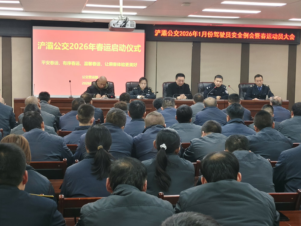 1月27日上午,世园旅汽公司组织召开2026年春运动员大会,邀请西安市公安局交通警察支队港浐大队和浐灞国际港城市综合管理局交通科相关领导出席,公司公交驾驶员、员工代表共82人参加本次会议。