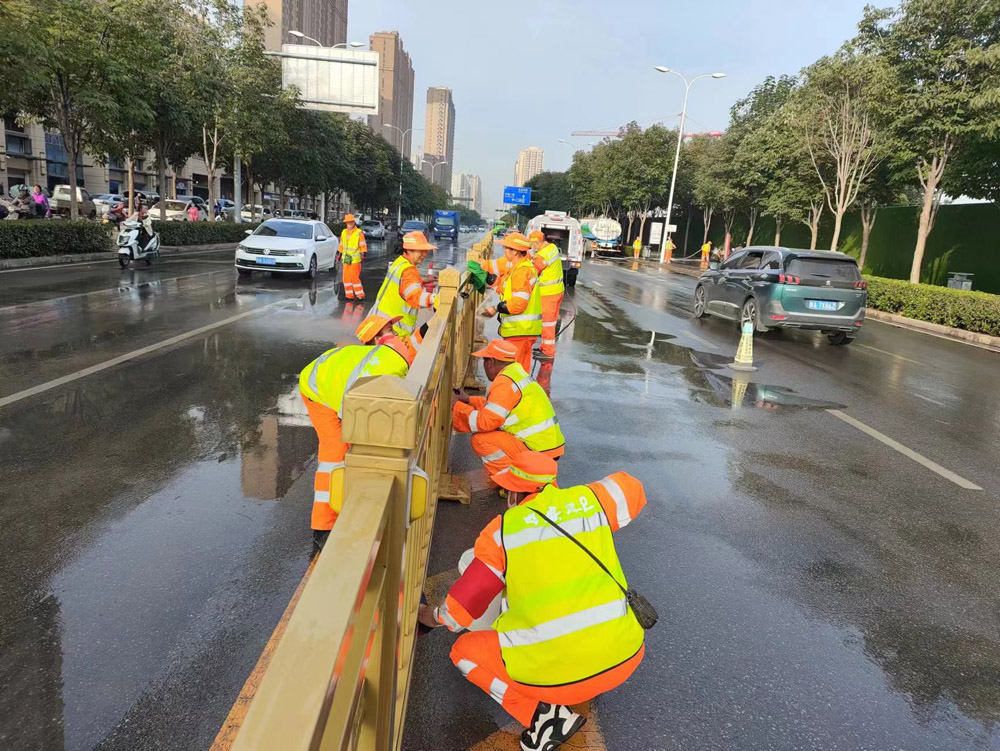 2023年西安(星河湾)马拉松于10月29日正式开跑。为保障赛事顺利进行,提升浐灞城市形象,世园物业高度重视,提前谋划,强化措施,开展工程维保、道路保洁、会议楼项目“三线联动”:一是采用机械化作业、人工保洁双保障营造干净整洁的赛事环境;二是对赛道路段及周边市政设施进行全面排查维护,确保市政设施安全平稳运行;三是协助半马相关保障部门完成用电、物资借调存放、生活服务等一系列工作,顺利完成西安马拉松浐灞归属赛段赛事保障。