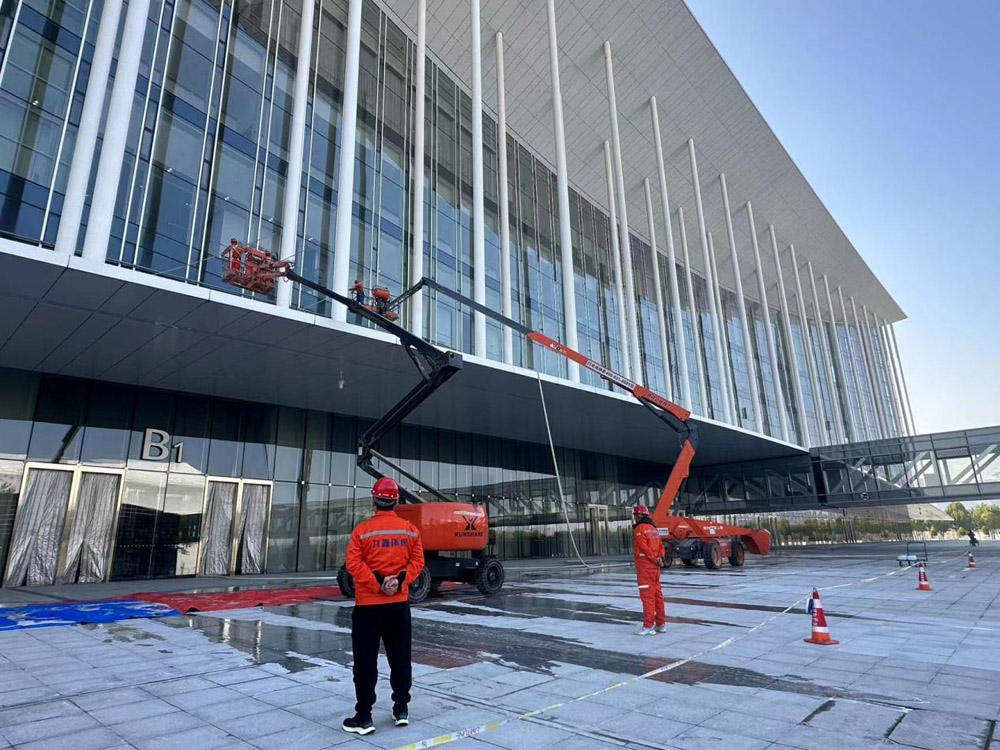 2023年11月16日至19日,第七届丝绸之路国际博览会在会展中心·会议楼举办。世园物业会议楼项目部认真筹划,提前部署,安全有序完成各类专项清洁工作,为展会提供干净明亮的会议环境,同时,根据展会及会议安排及保会方案,多次召开动员会,加强培训,明确分工,提高全员安全服务意识,以饱满的精神状态,最佳的服务品质,圆满完成此次会议保障工作。