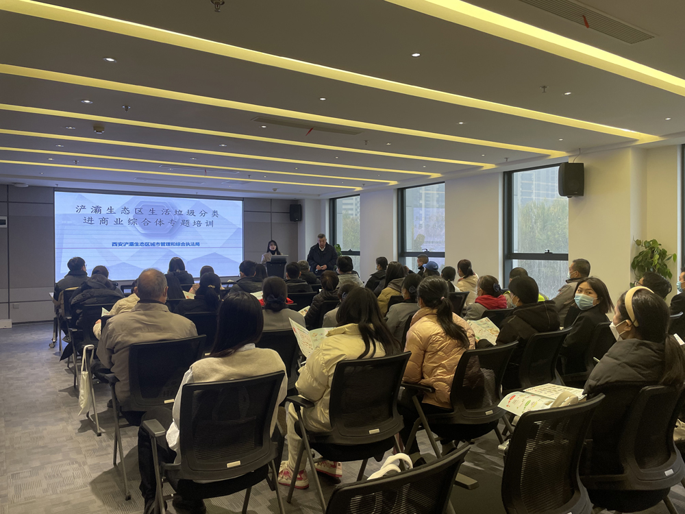 12月12日,世园物业管理公司联合城管局组织长安大学科技园工作人员开展垃圾分类商业综合体专题培训会。