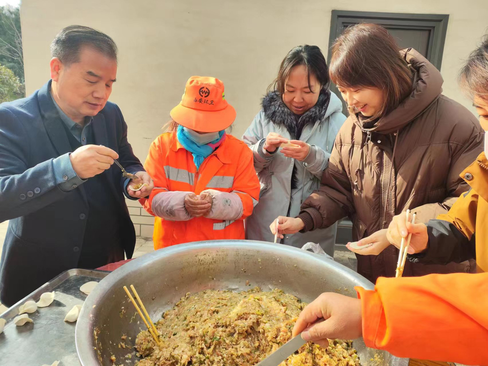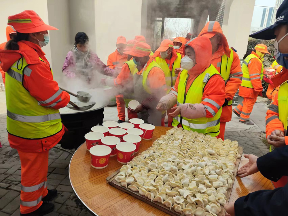 12月22日上午,世园物业道路保洁项目部在总经理与副总经理的带领下,开展“情暖冬至,饺香飘溢”冬至包饺子送温暖活动,让辖区环卫工人感受到浓浓的暖意,营造了浓厚的节日氛围。