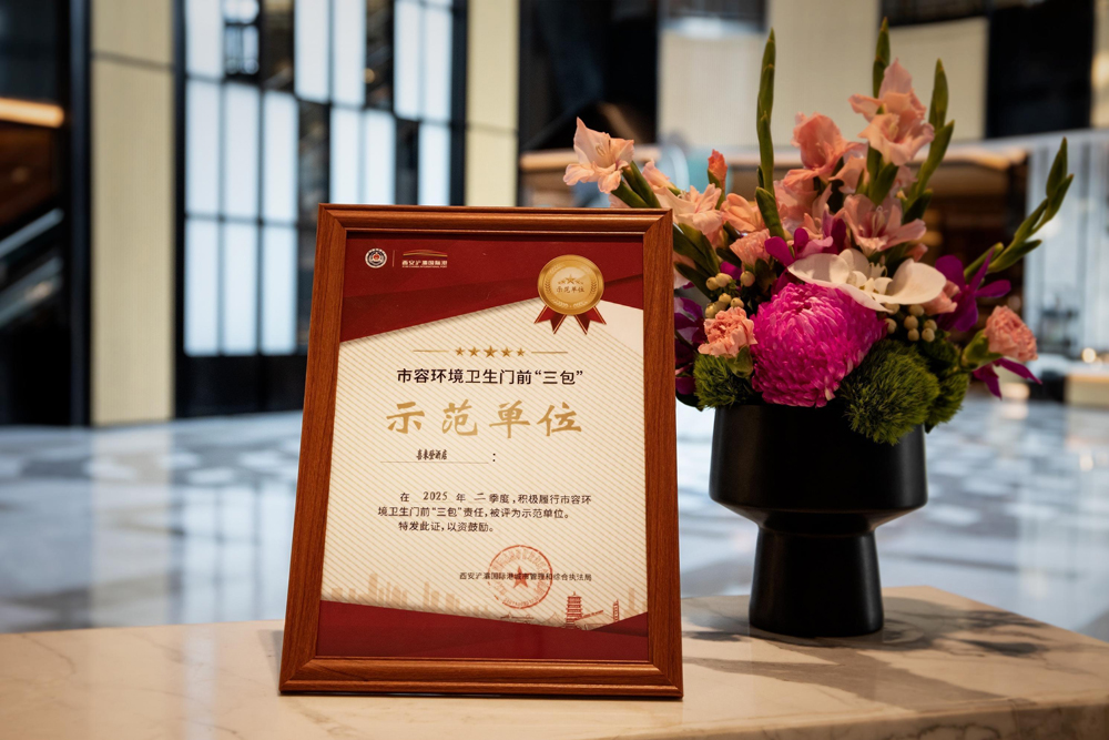 近日,西安浐灞喜来登酒店和西安浐灞万枫酒店双双荣获西安浐灞国际港城市管理和综合执法局授予的“市容环境卫生门前三包示范单位”荣誉证书。这一殊荣,是对两家酒店在垃圾分类领域深耕细作、持续践行责任的高度肯定。