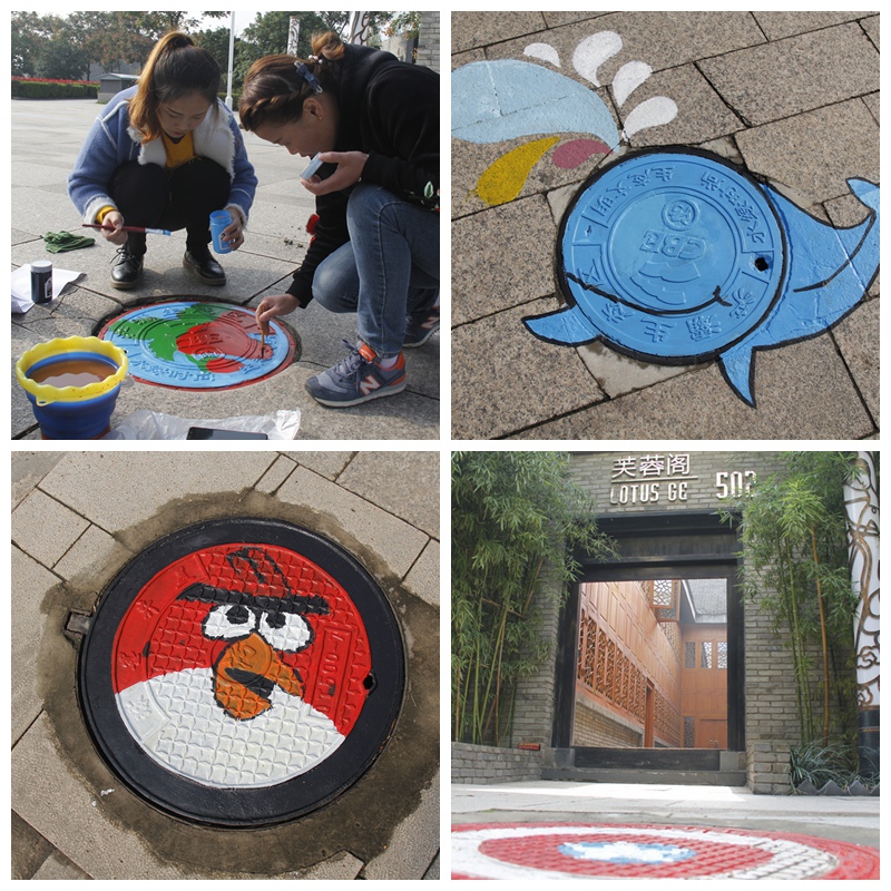近日,灞柳驿酒店再添一道靓丽的风景。原本平淡无奇的下水井盖上呈现出“愤怒的小鸟、大鲸鱼、哆啦A梦”等卡通图案,吸引了行人们的驻足围观,也被宾客们赞为“井上添花”。