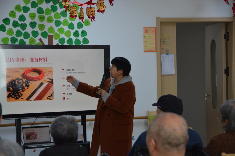 活动伊始,手作老师首先为老人们带来了关于“无患子”的知识分享,通俗易懂的讲解,配以实物展示,大家饶有兴致地触摸着这些大自然的馈赠。