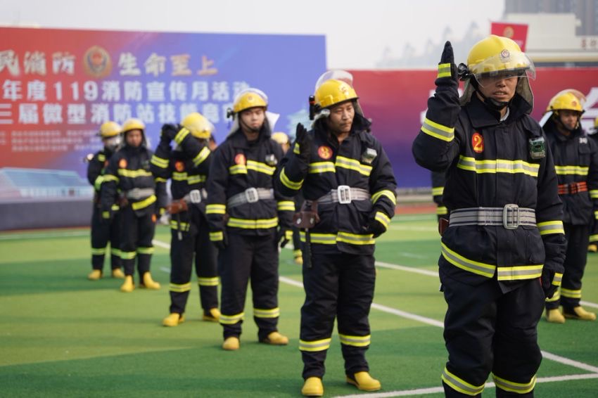 为更好的检验区内微型消防站的业务能力,夯实基层火灾防控力量,11月8日,区消防大队举行了以“全民消防、安全至上”的第三届微型消防站技能竞赛,世园置业公司受邀参加,特派6名队员参与防火技能大赛。此次技能大赛项目贴近实战,包括原地着装、两盘水带接力赛、力量拔河等。比武突出技能、体能、实战,有效的检验了微型消防站队员的实战应用能力。