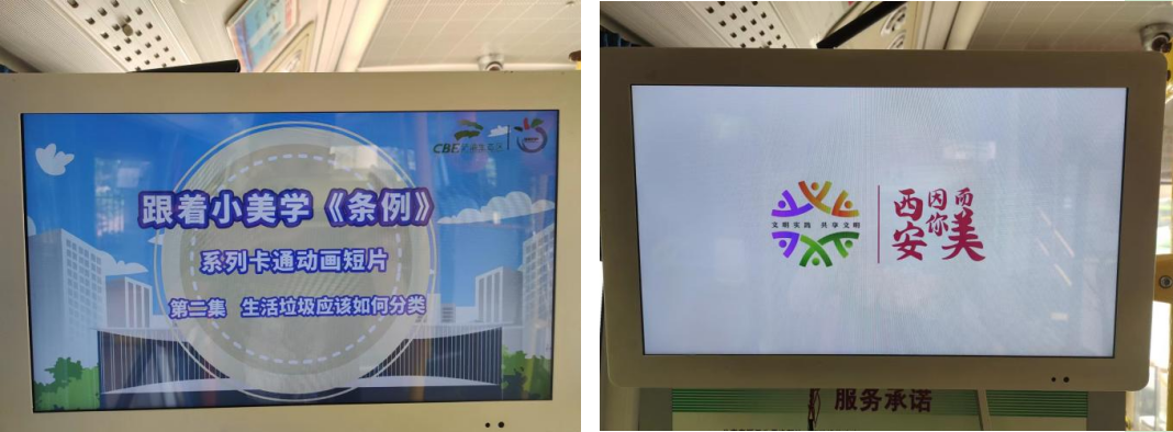 公交多媒体公益广告是展示文明交通的载体,也是城市的一张“名片”。今年以来,西安世园旅游汽车有限公司积极响应行业主管部门、浐灞生态区以及集团公司宣传要求,开展了主题为《浐灞疫情防控》、《西安因你而美丽》、《垃圾分类系列新版》、《三秦楷模》、《拳拳赤子心 殷殷家国情》、《西安市最新防疫政策》等多媒体公益广告的更新宣传,在公司自有公交运营车辆上全天循环播放。