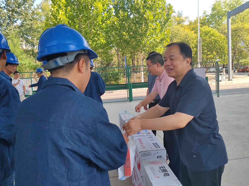 7月31日上午,按照《世园集团“防风险、除隐患、促发展”暨“送清凉”活动方案》部署安排,以世园集团党群工作部部长刘友团、世园旅汽公司总经理李晓东、世园集团党群工作部副部长李森为代表的世园集团第三工作组,到金桥三路充电站(二期)项目建设场地进行走访慰问。