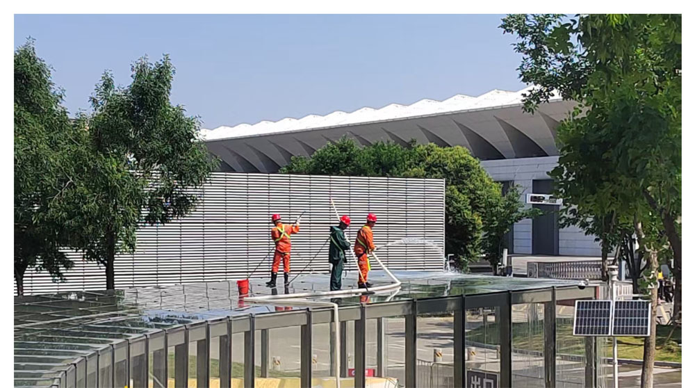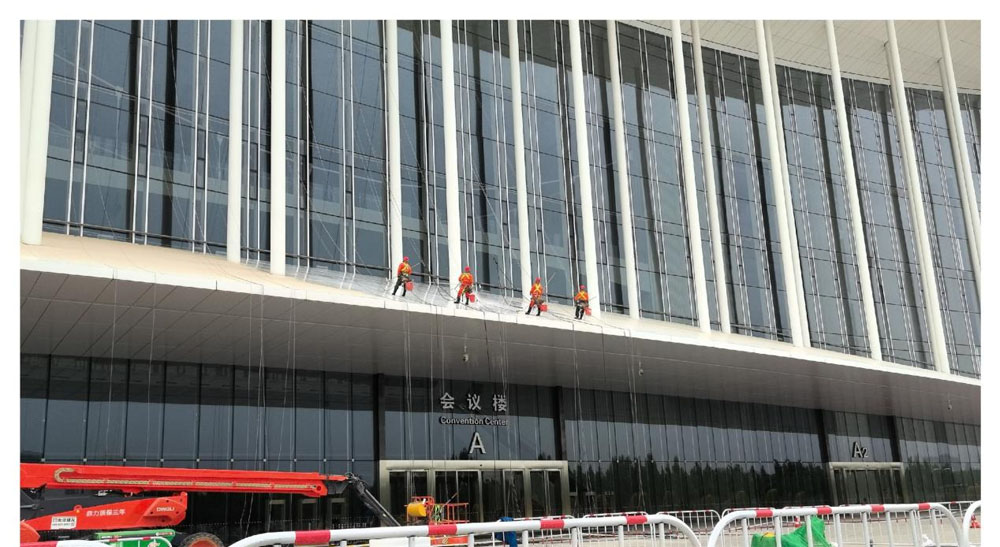 丝博会高空清洗任务安全收官