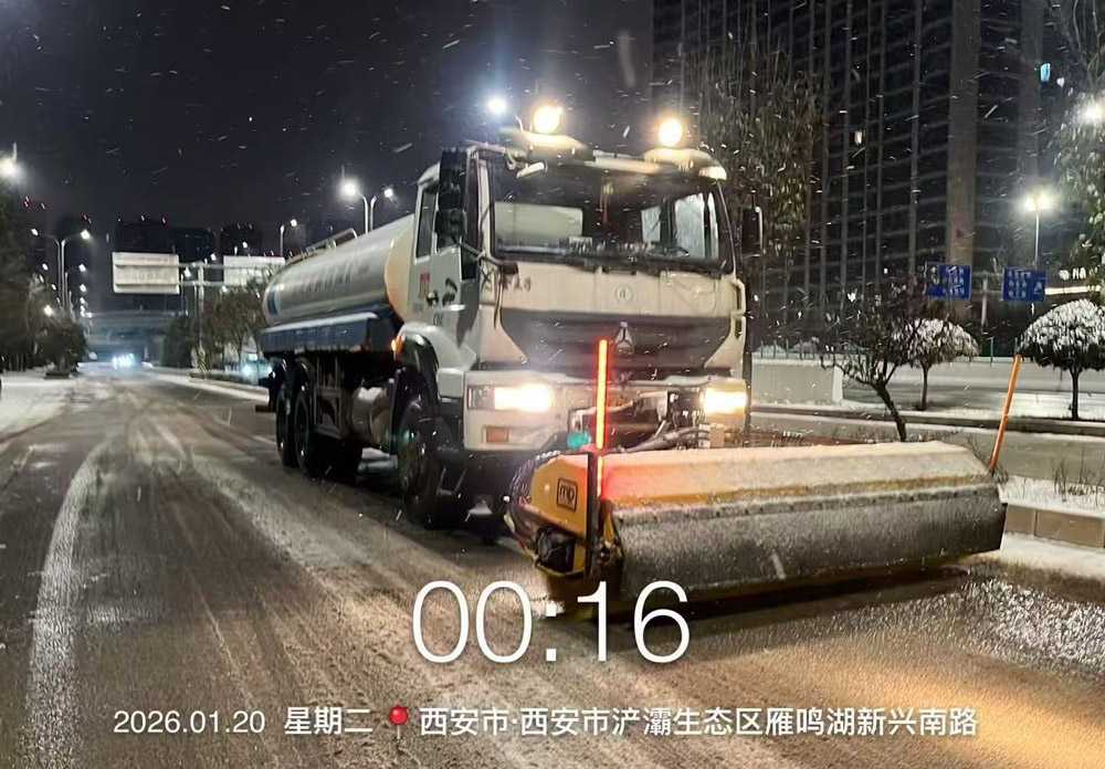 2026年1月19日,西安市普降大雪,世园物业管理公司环保事业部机扫保洁项目闻雪而动、以雪为令,在公司领导的统筹指挥下,迅速启动低温雨雪天气防范应对预案,全力开展全域防冻、防凝、扫雪除冰作业,筑牢城市道路通行防线。