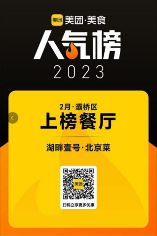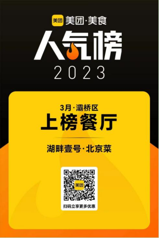 4月3日,经过系统综合审查考核,湖畔壹号北京菜凭借口碑和人气,又荣登3月份美团美食灞桥区“人气榜单”,连续两个月蝉联上榜。