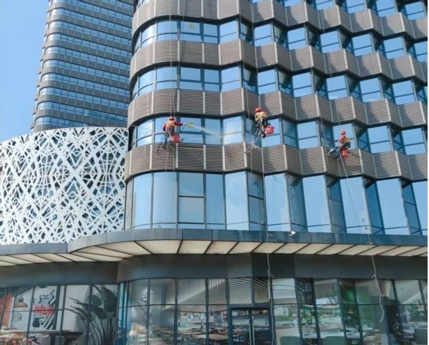 经过12 天精密施工,浐灞国际港自贸中心近6万㎡的外立面幕墙深度清洗焕新作业顺利完成!此次作业以“清洁 +养护”双维标准开展,在深度清除幕墙污渍,实现玻璃透光率提升至95%的同时,同步完成结构胶开裂修复、五金件紧固等安全维护,从细微之处为建筑构建安全屏障,让楼宇从内到外皆具卓越品质。