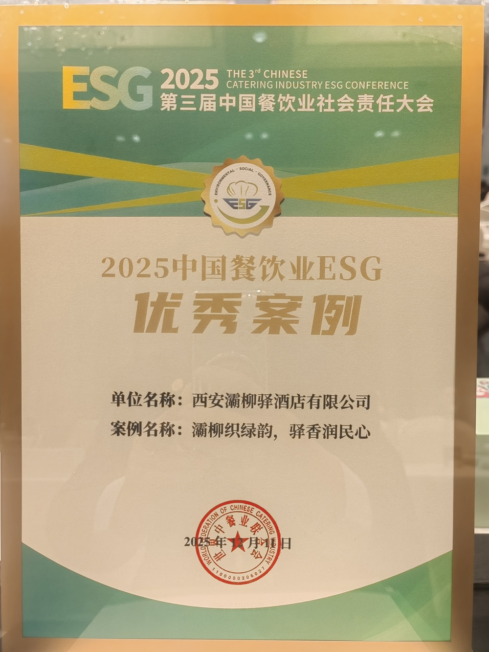 灞柳驿酒店入选2025中国餐饮业ESG优秀案例