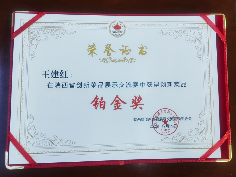 2025年12月29日,由陕西省商务厅、陕西省工商联、世界中餐业联合会支持,陕西省餐饮业商会主办的陕西省创新菜品展示交流会,吸引了来自全省300余位行业领导、餐饮企业代表、名厨大师、供应链企业及媒体朋友齐聚一堂。在这场行业盛宴中,灞柳驿酒店凭借精湛的烹饪技艺与深厚的品牌积淀脱颖而出,一举斩获团体展示金奖;酒店厨师王建红(中式凉菜)摘得个人展示铂金奖,张博(中式烹饪)、鲁建党(中式面点)双双荣获个人展示金奖,以硬核实力包揽多项重磅荣誉,成为全场焦点。