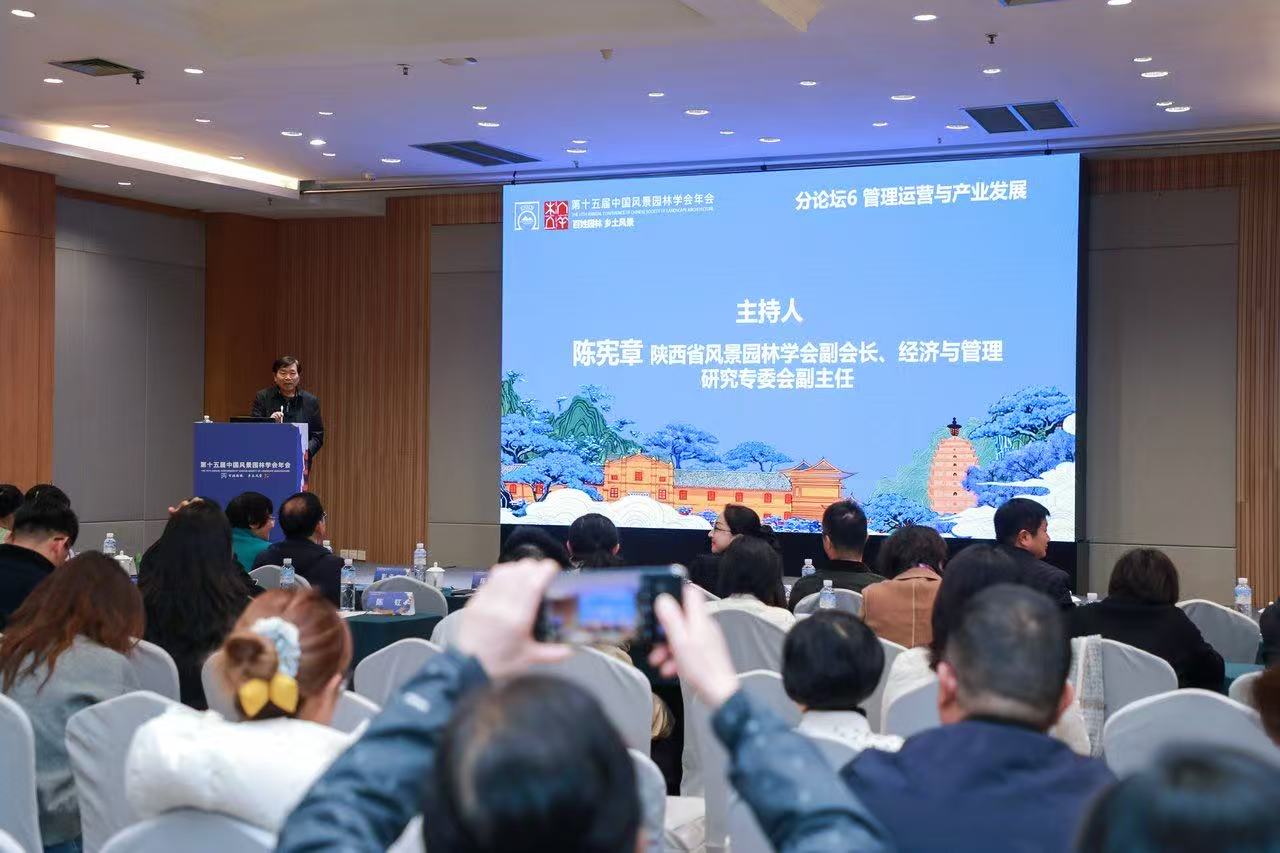 本届年会与会嘉宾,陕西省风景园林协会副会长陈宪章主持“管理运营与产业发展论坛”并发表讲话,阐述传统园林企业须开拓思维,以创新驱动发展民生型园林,实现社企共赢与可持续发展。