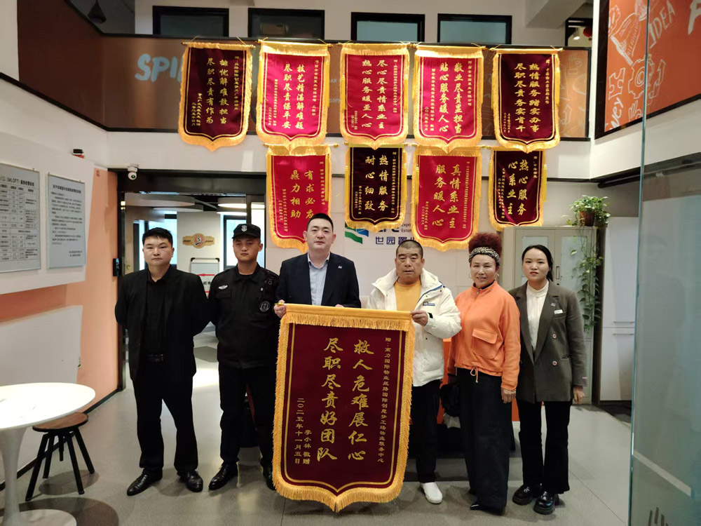 11月7日,该市民给物业服务中心送来印有“救人危难展仁心,尽职尽责好团队”的锦旗表达感谢。这份沉甸甸的认可,远比任何物质都更有分量。它不仅是对当值工作人员工作的肯定,更是对丝路国际创意梦工场服务团队的认可。未来,我们将把这份鼓励与认可转化为前行的动力,持续坚守岗位,用贴心服务守护园区平安。